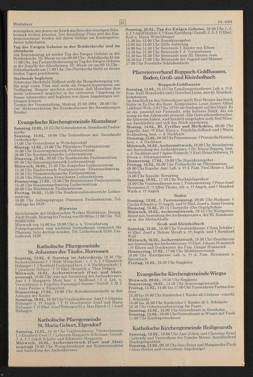 Termin der Veranstaltung: Montag, 21.02.1994 - 20.00 Uhr Ort: Mehrzweckraum des Krankenhauses der Barmherzigen Brüder.
