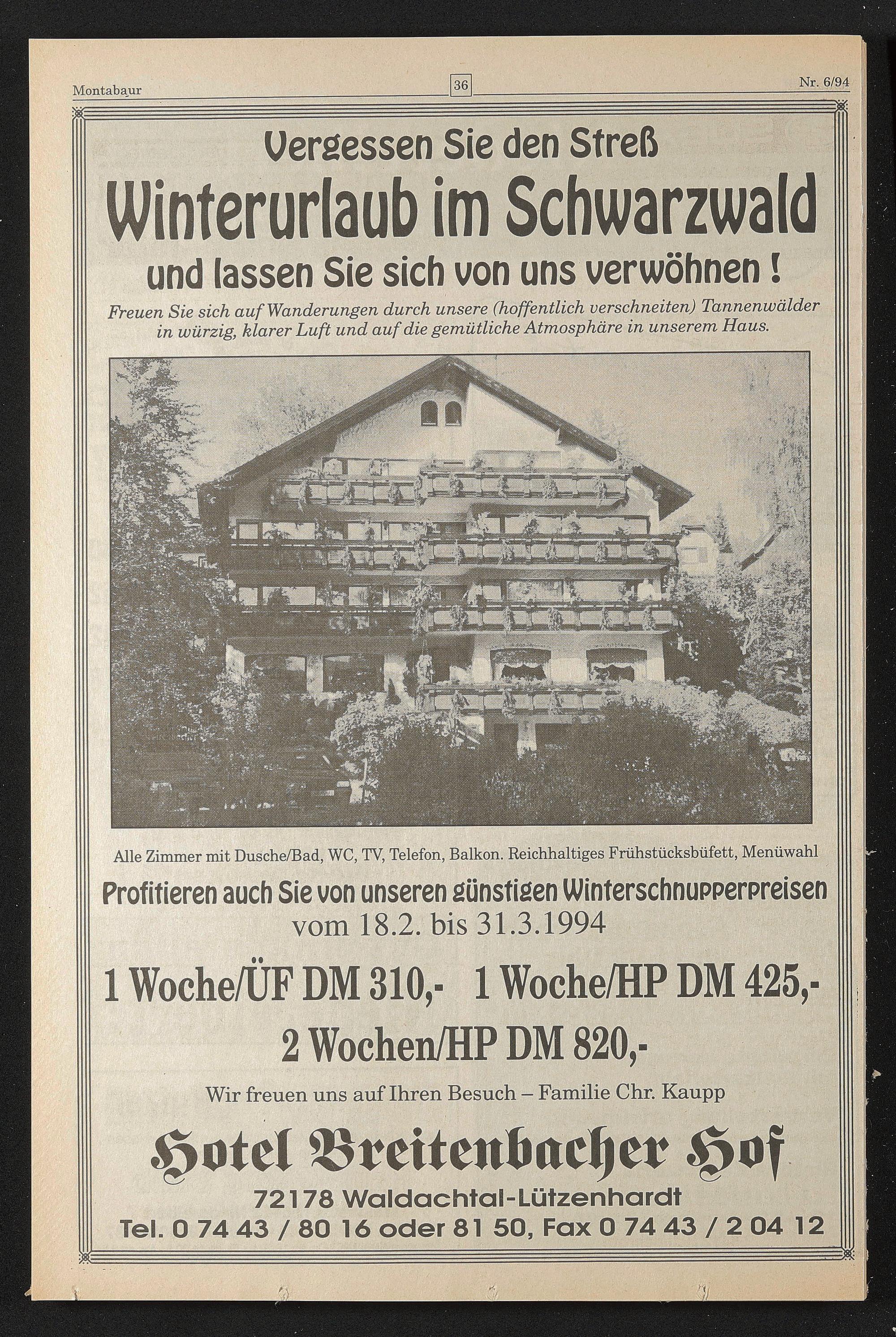 72178 Waldachtal-Lützenhardt Tel. 0 74 43 / 80 16 oder 81 50, Fax 0 74 43 / 2 04 12