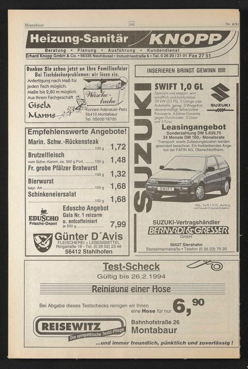 FLEISCHEREI + LEBENSMITTEL Ringstraße 18 - Tel. (0 26 Ö2) 23 48