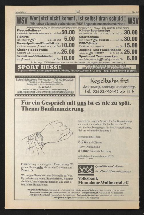 Angebote nur gültig im Winterschlußverkauf von Montag 31.1.-11.2.94 und solange Vorrat reicht