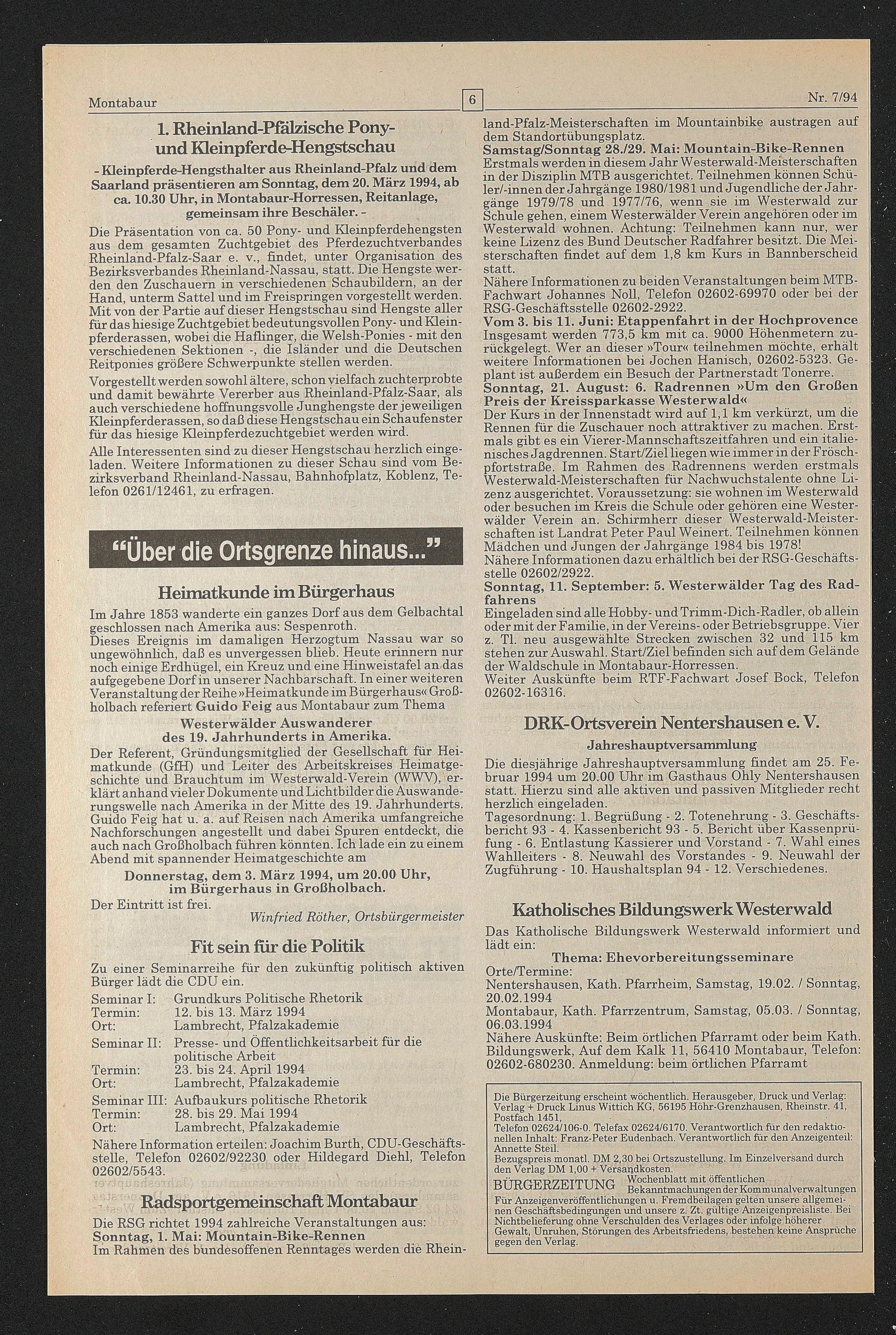 Donnerstag, dem 3. März 1994, um 20.00 Uhr, im Bürgerhaus in Großholbach.