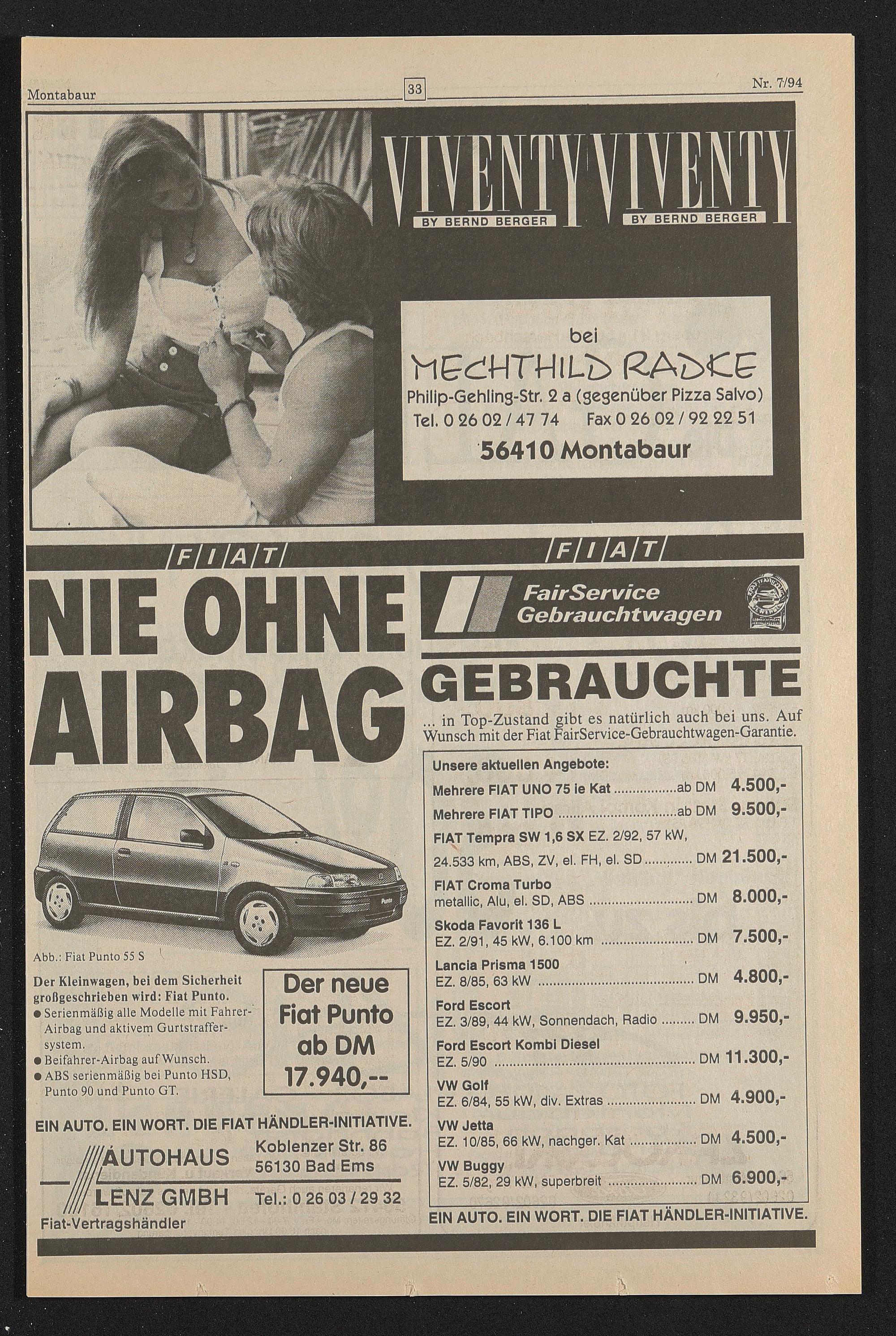 Der neue Fiat Punto ab DM 17.940,-