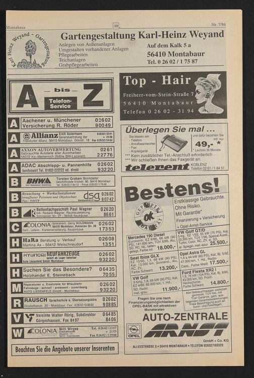 Frankfurter Allianz, 56410 Montabaur, Oderstr. 18 Fax 02602/5460