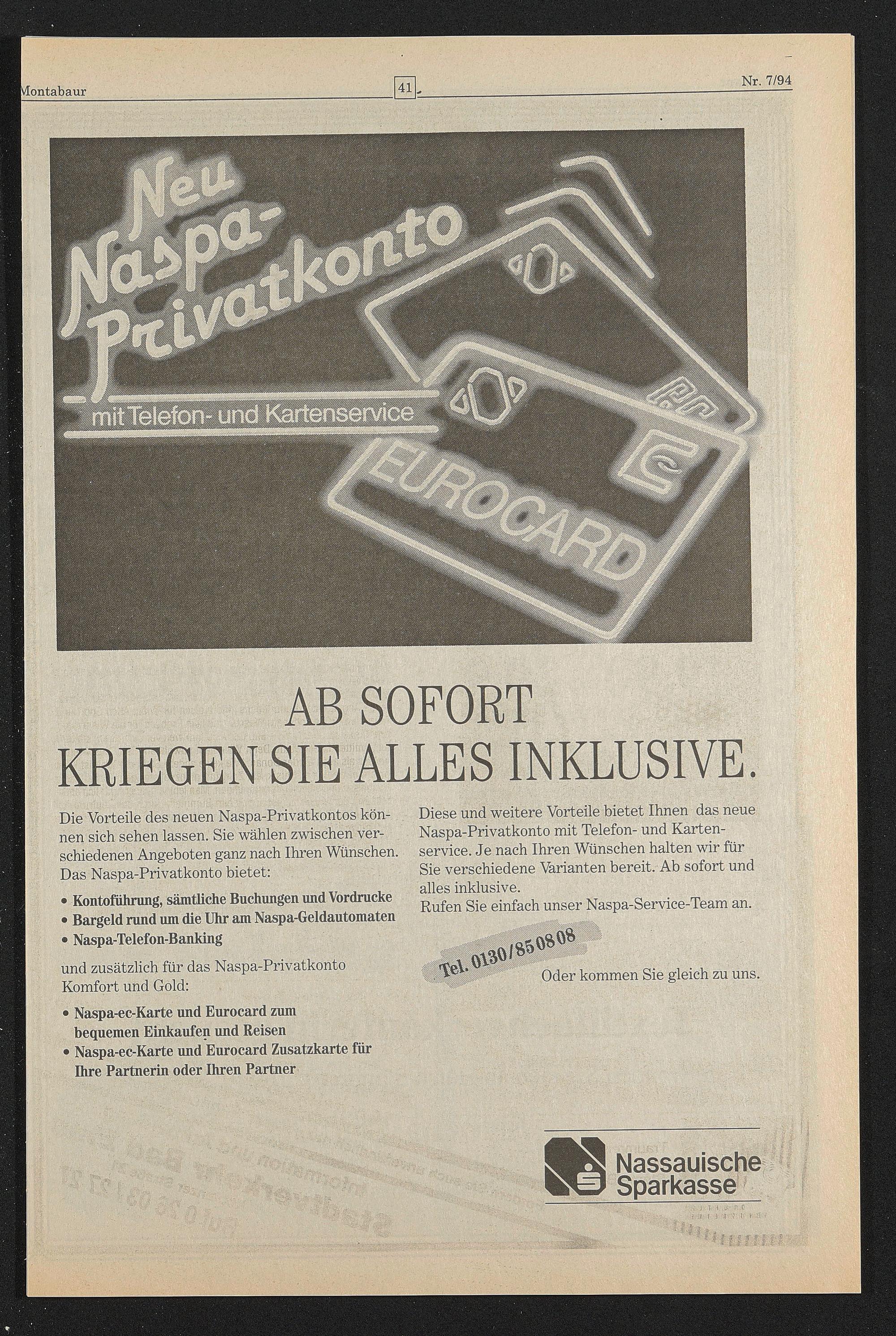 Diese und weitere Vorteile bietet Ihnen das neue Naspa-Privatkonto mit Telefon- und Kartenservice. Je nach Ihren Wünschen halten wir für Sie verschiedene Varianten bereit. Ab sofort und alles inklusive.