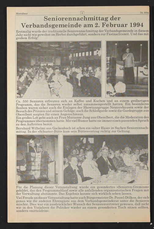 Seniorennachmittag der Verbandsgemeinde am 2. Februar 1994