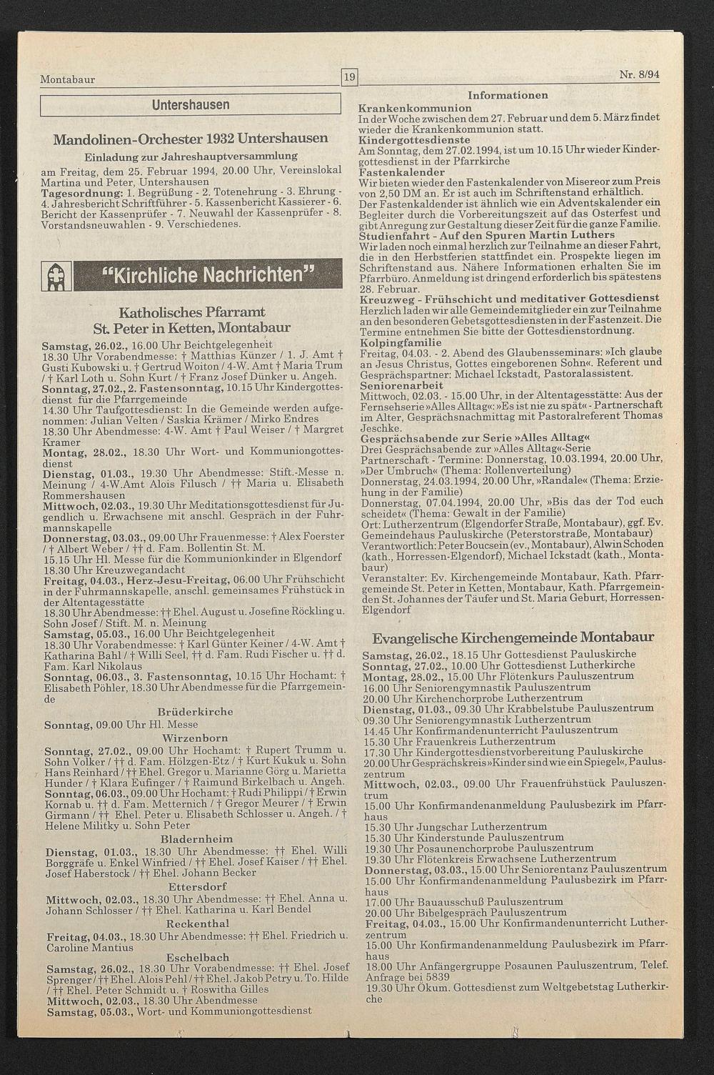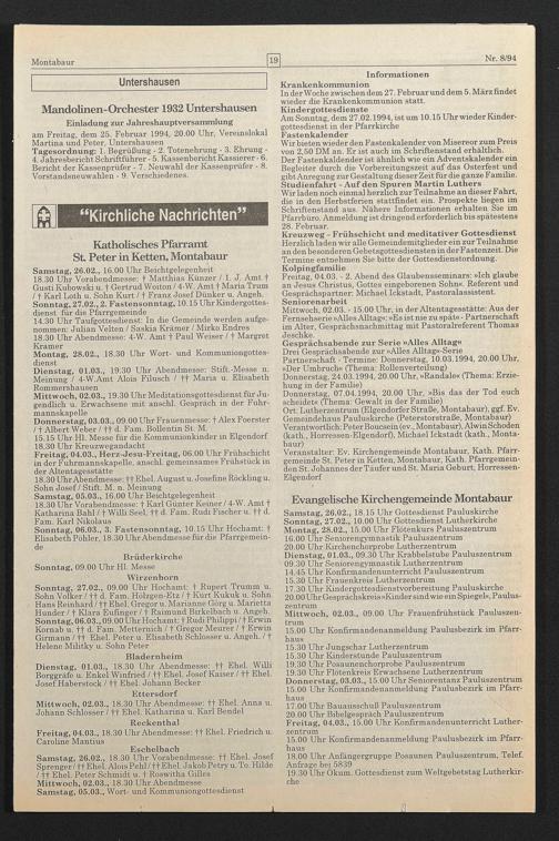 am Freitag, dem 25. Februar 1994, 20.00 Uhr, Vereinslokal Martina und Peter, Untershausen