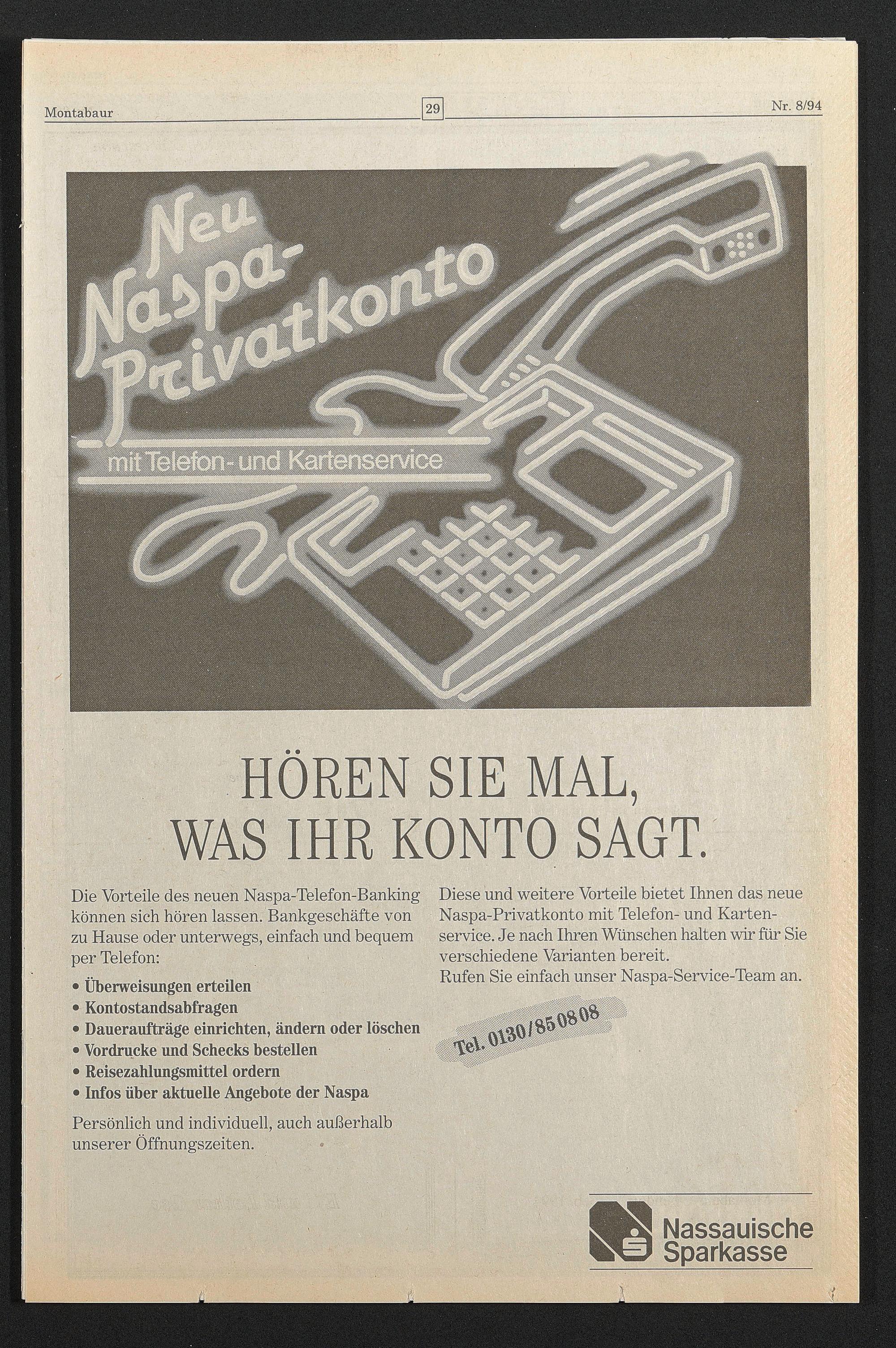 Diese und weitere Vorteile bietet Ihnen das neue Naspa-Privatkonto mit Telefon- und Kartenservice. Je nach Ihren Wünschen halten wir für Sie verschiedene Varianten bereit.