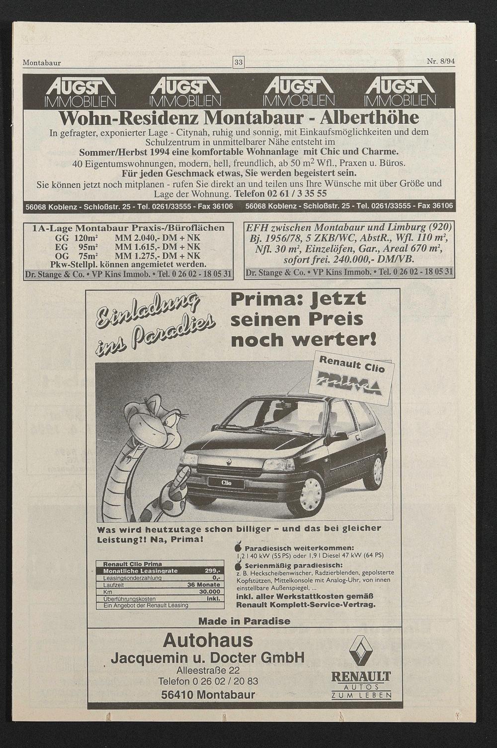 EFH zwischen Montabaur und Limburg (920) Bj. 1956/78, 5 ZKB/WC, AbstR., Wfl. 110 m 2 , Nfl. 30 m 2 , Einzelöfen, Gar., Areal 670 m 2 , sofort frei. 240.000,- DM/VB.