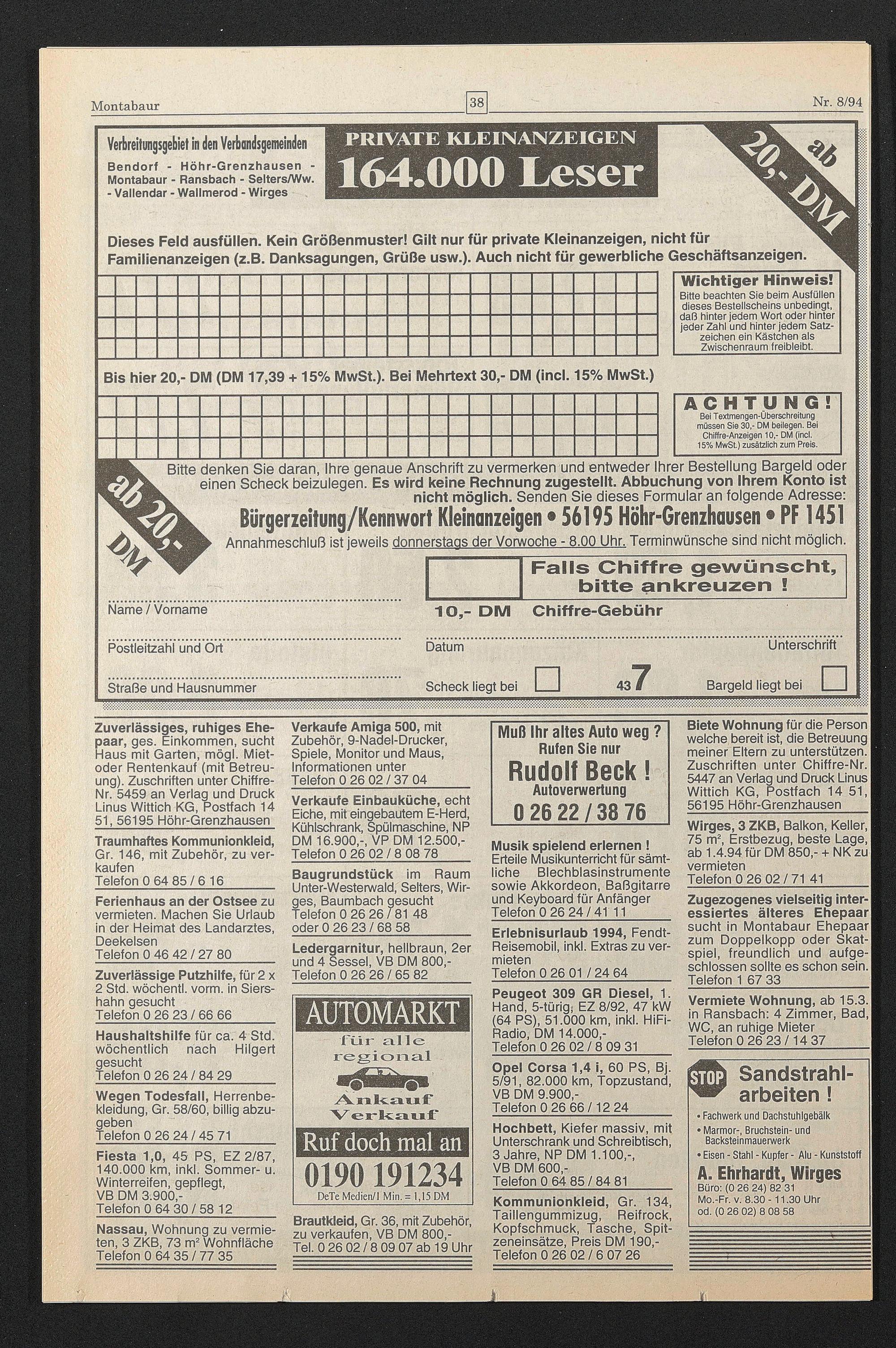 Bürgerzeitung/Kennwort Kleinanzeigen • 56195 Höhr-Grenzhausen • PF 1451