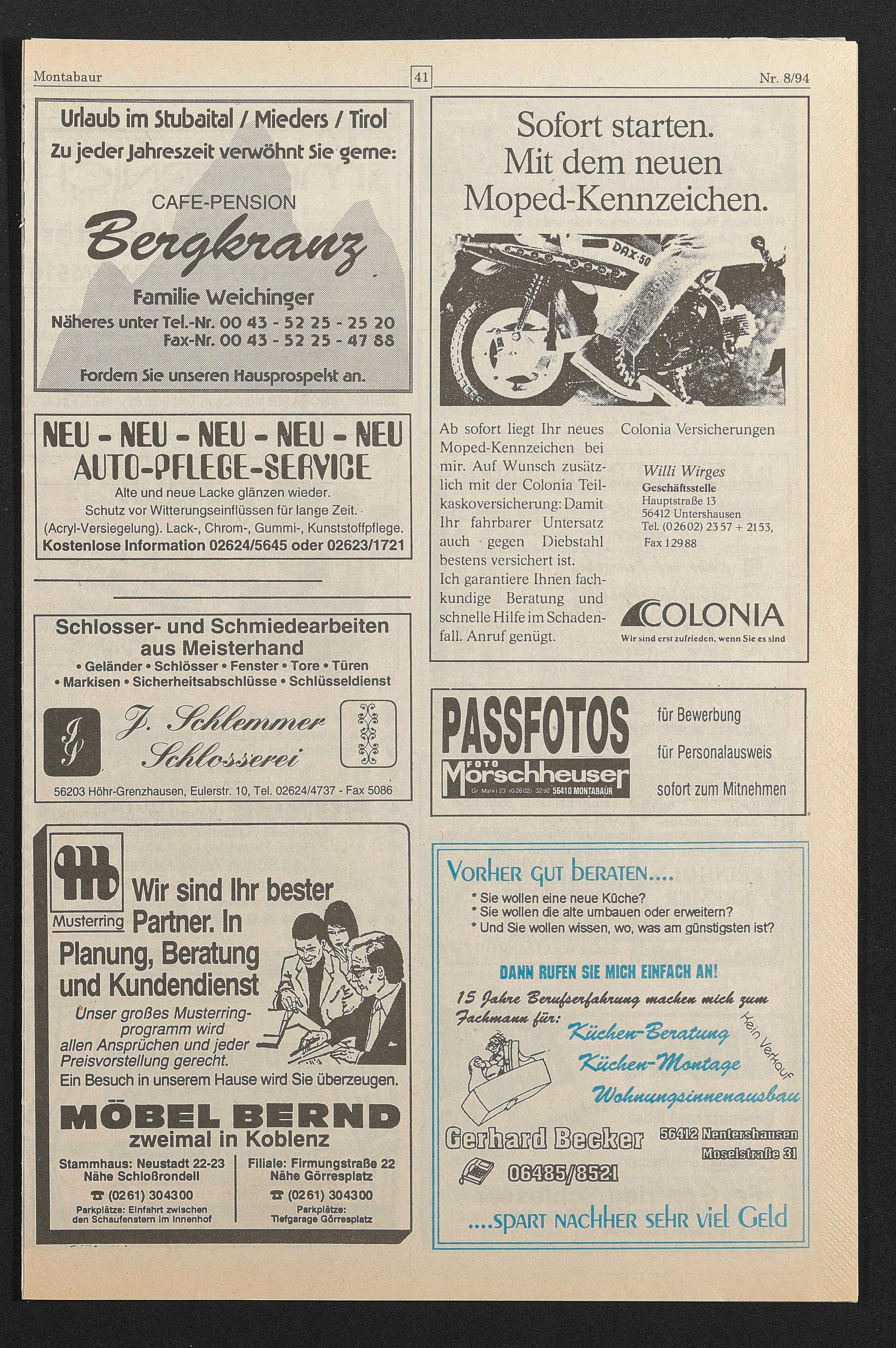 Ab sofort liegt Ihr neues Moped-Kennzeichen bei mir. Auf Wunsch zusätzlich mit der Colonia Teil- kaskoversicherung: Damit Ihr fahrbarer Untersatz auch ■ gegen Diebstahl bestens versichert ist.