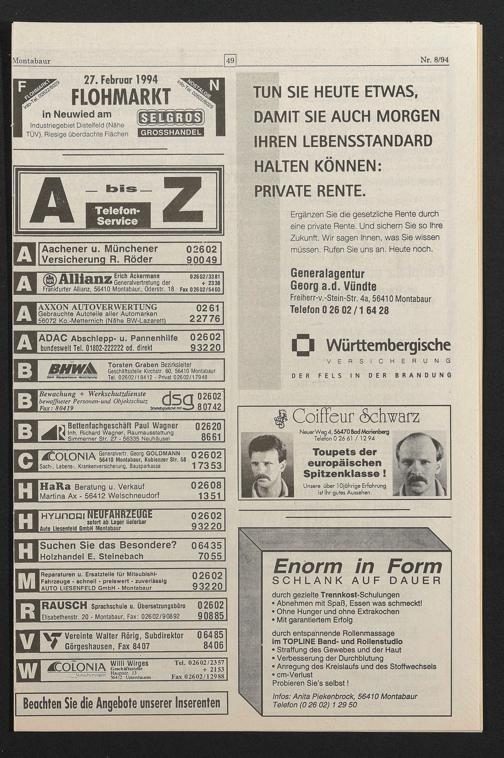 Frankfurter Allianz, 56410 Montabaur, Oderstr. 18 Fax 026 02/5460
