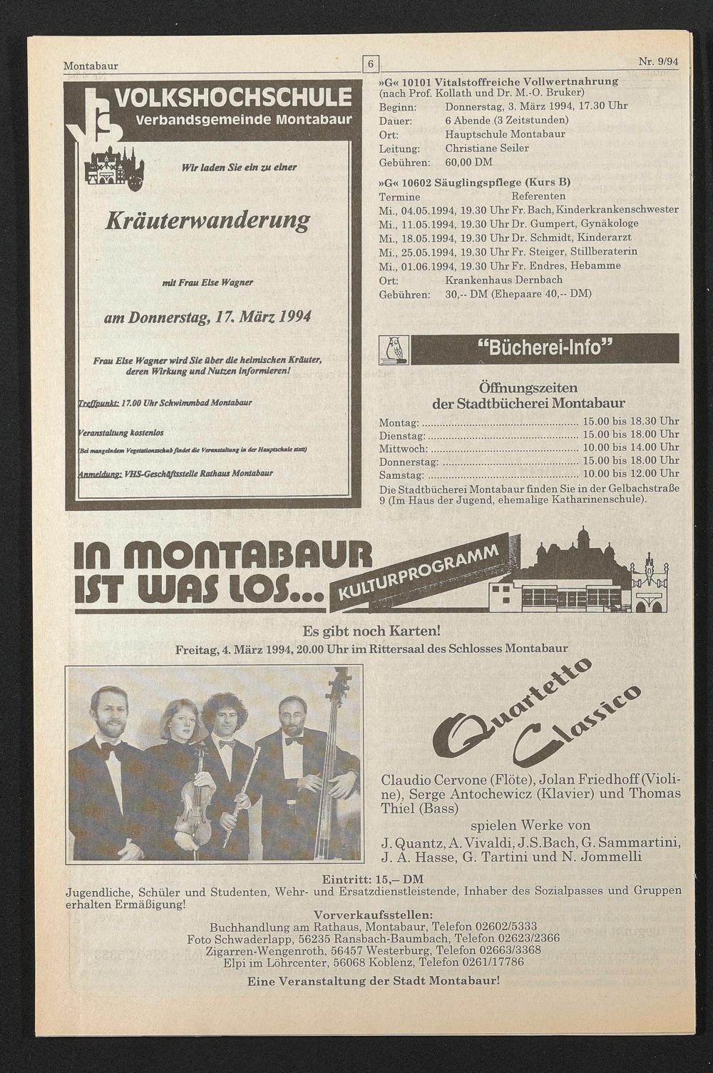 Freitag, 4. März 1994,20.00 Uhr im Rittersaal des Schlosses Montabaur