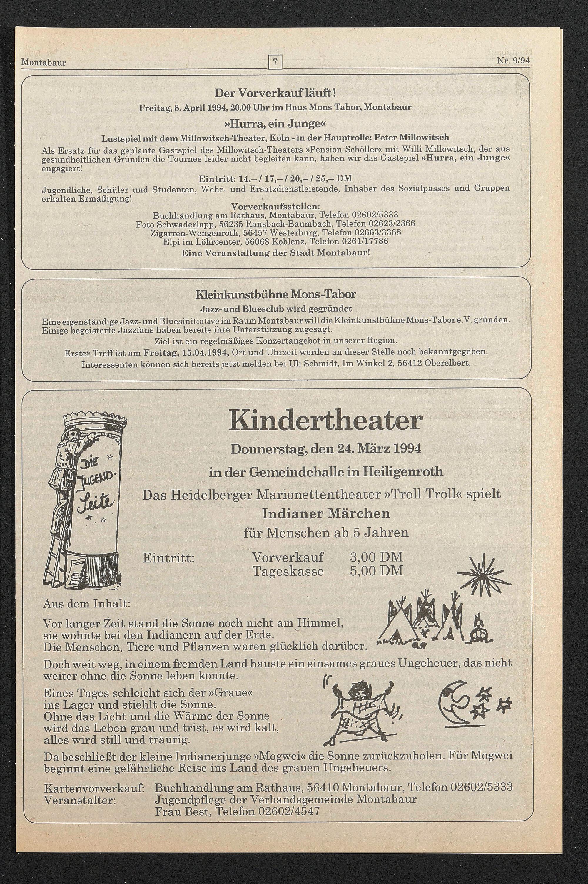 Kartenvorverkauf: Buchhandlung am Rathaus, 56410 Montabaur, Telefon 02602/5333
