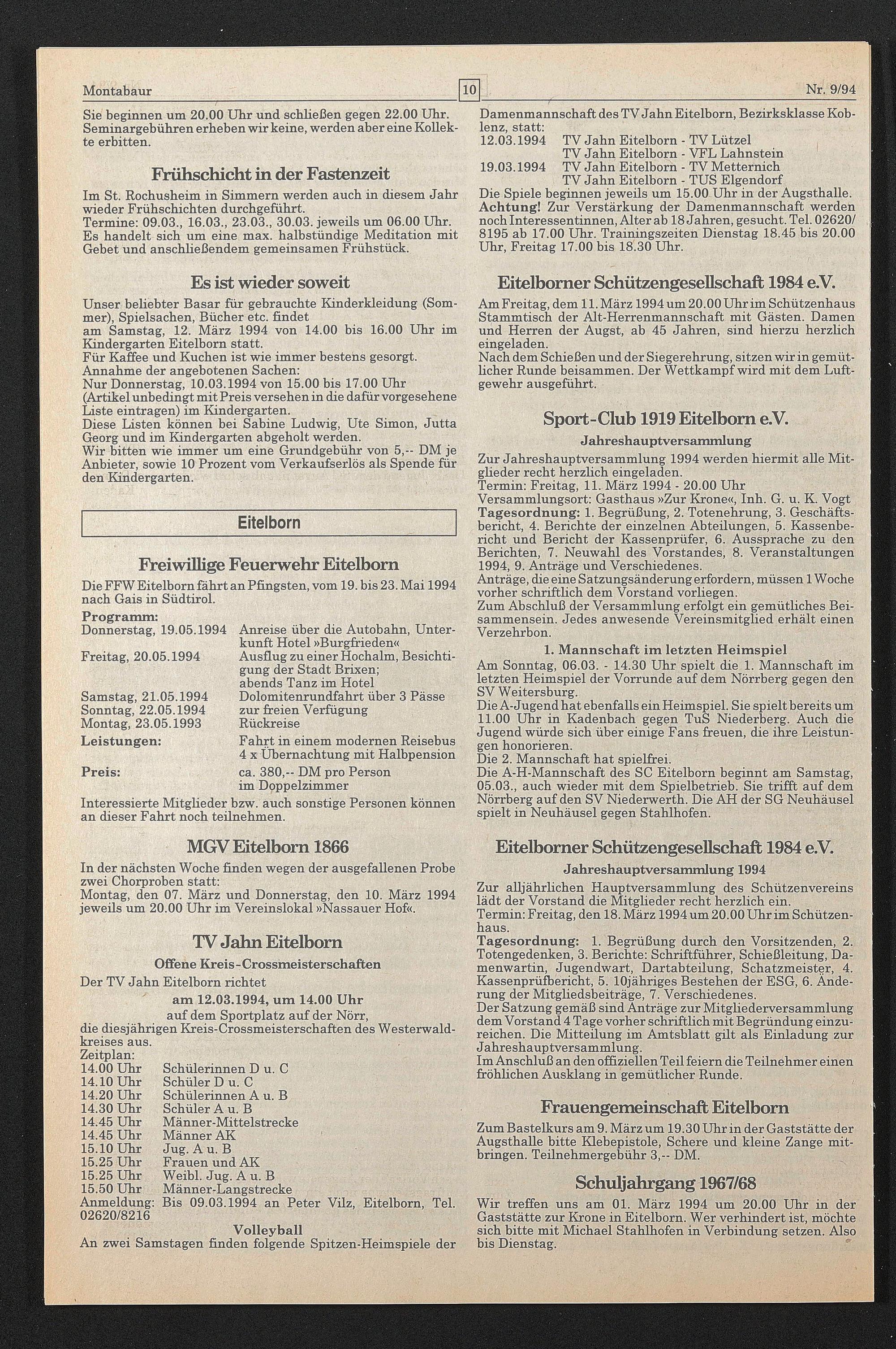 am Samstag, 12. März 1994 von 14.00 bis 16.00 Uhr im Kindergarten Eitelborn statt.