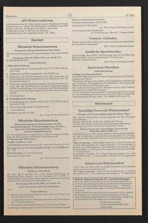 Oberelbert/Montabaur, 25.02.1994 Ortsgemeinde Oberelbert