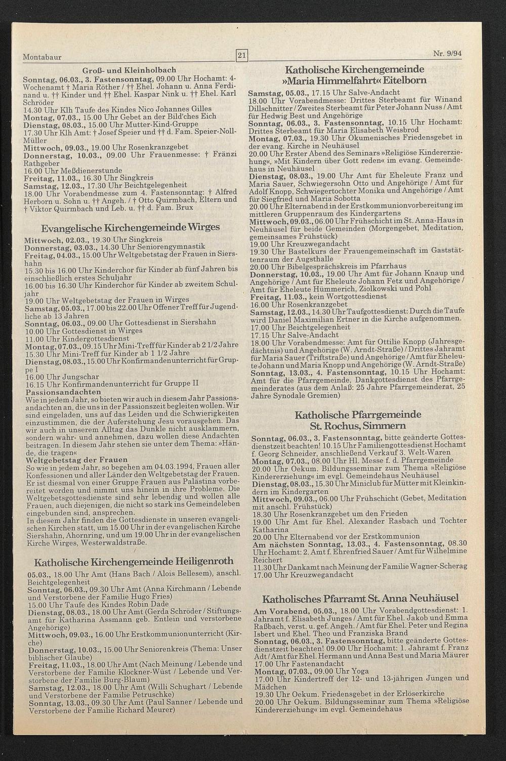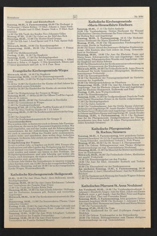 14.30 Uhr Klh Taufe des Kindes Nico Johannes Gilles Montag, 07.03., 15.00 Uhr Gebet an der Bild'ches Eich Dienstag, 08.03., 15.00 Uhr Mutter-Kind-Gruppe