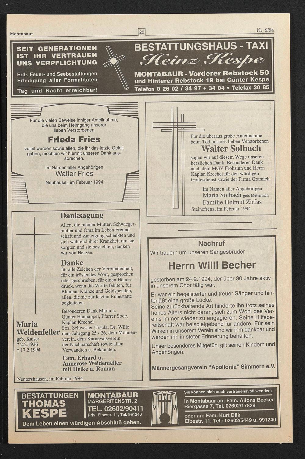 Im Namen aller Angehörigen Maria Solbach geb. Metternich Familie Helmut Zirfas