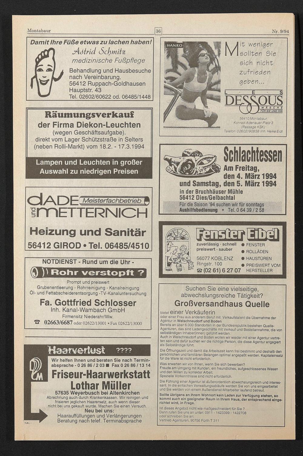 (wegen Geschäftsaufgabe), direkt vom Lager Schützstraße in Selters (neben Rolli-Markt) vom 18.2. -17.3.1994