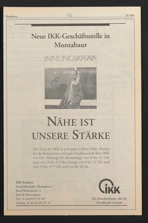 Geschäftsstelle Montabaur Josef-Kehreinstr. 4 56410 Montabaur Tel.: 0 26 02/9 33 50 Telefax: 0 26 02/93 35 35