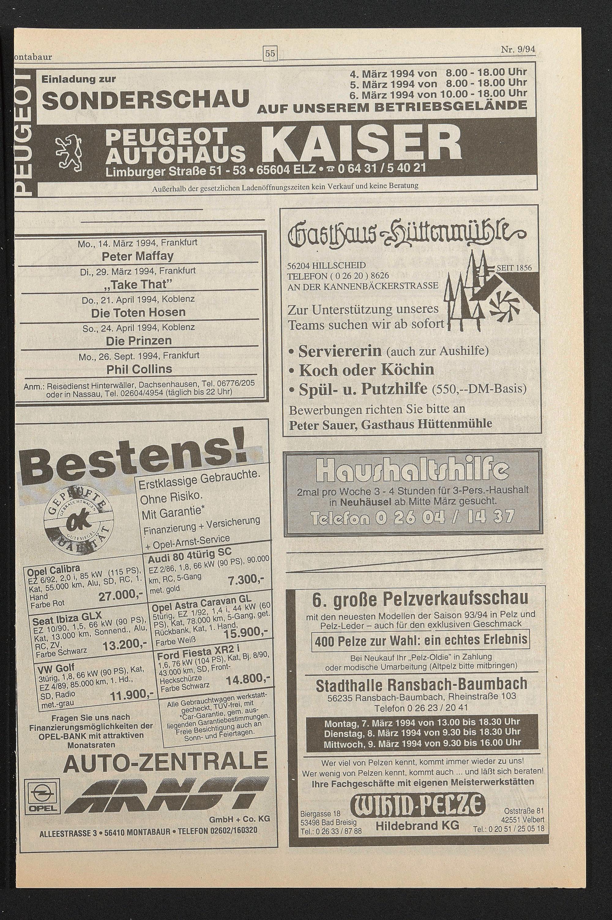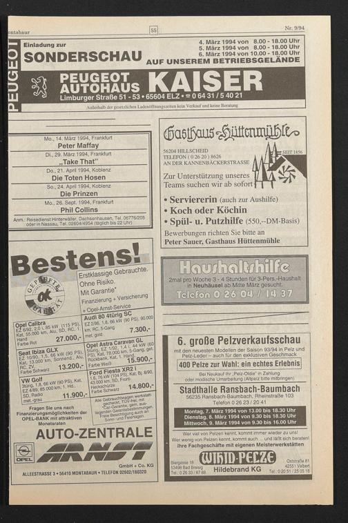 Anm.: Reisedienst Hinterwäller, Dachsenhausen, Tel. 06776/205 oder in Nassau, Tel. 02604/4954 (täglich bis 22 Uhr)