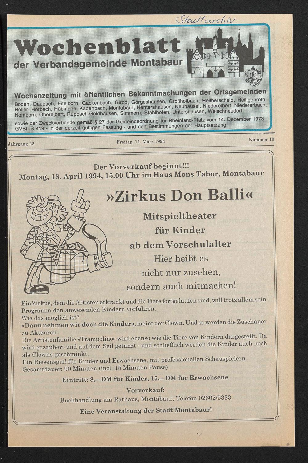 Jahrgang 22 Freitag, 11. März 1994 Nummer 10