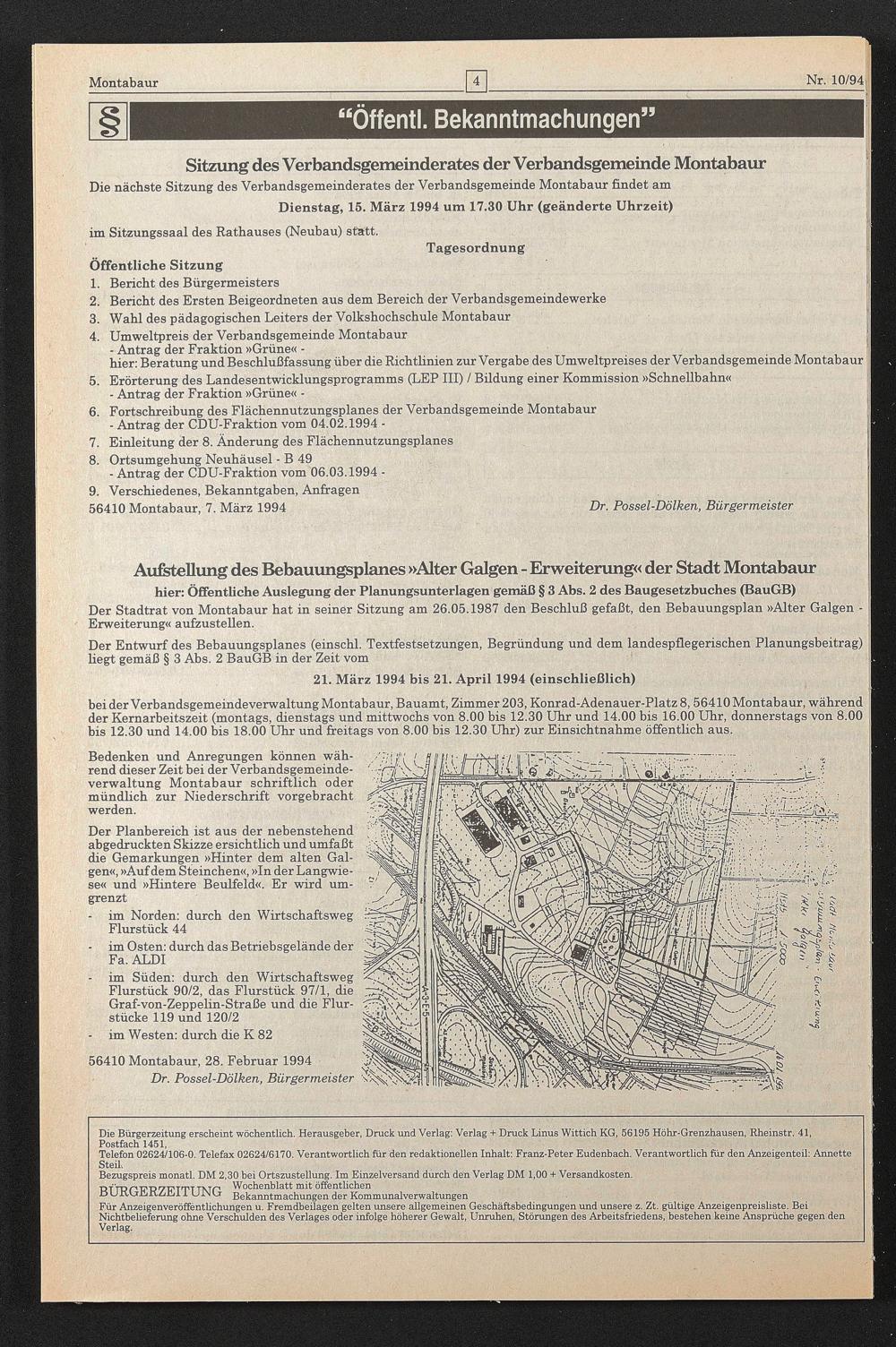 56410 Montabaur, 7. März 1994 Dr. Possel-Dölken, Bürgermeister