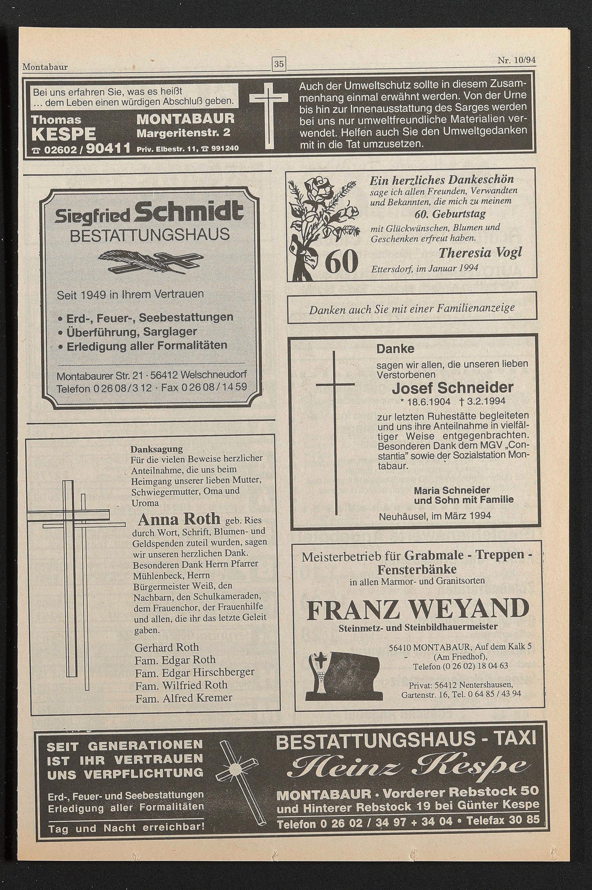 zur letzten Ruhestätte begleiteten und uns ihre Anteilnahme in vielfältiger Weise entgegenbrachten. Besonderen Dank dem MGV „Constantia" sowie der Sozialstation Montabaur.