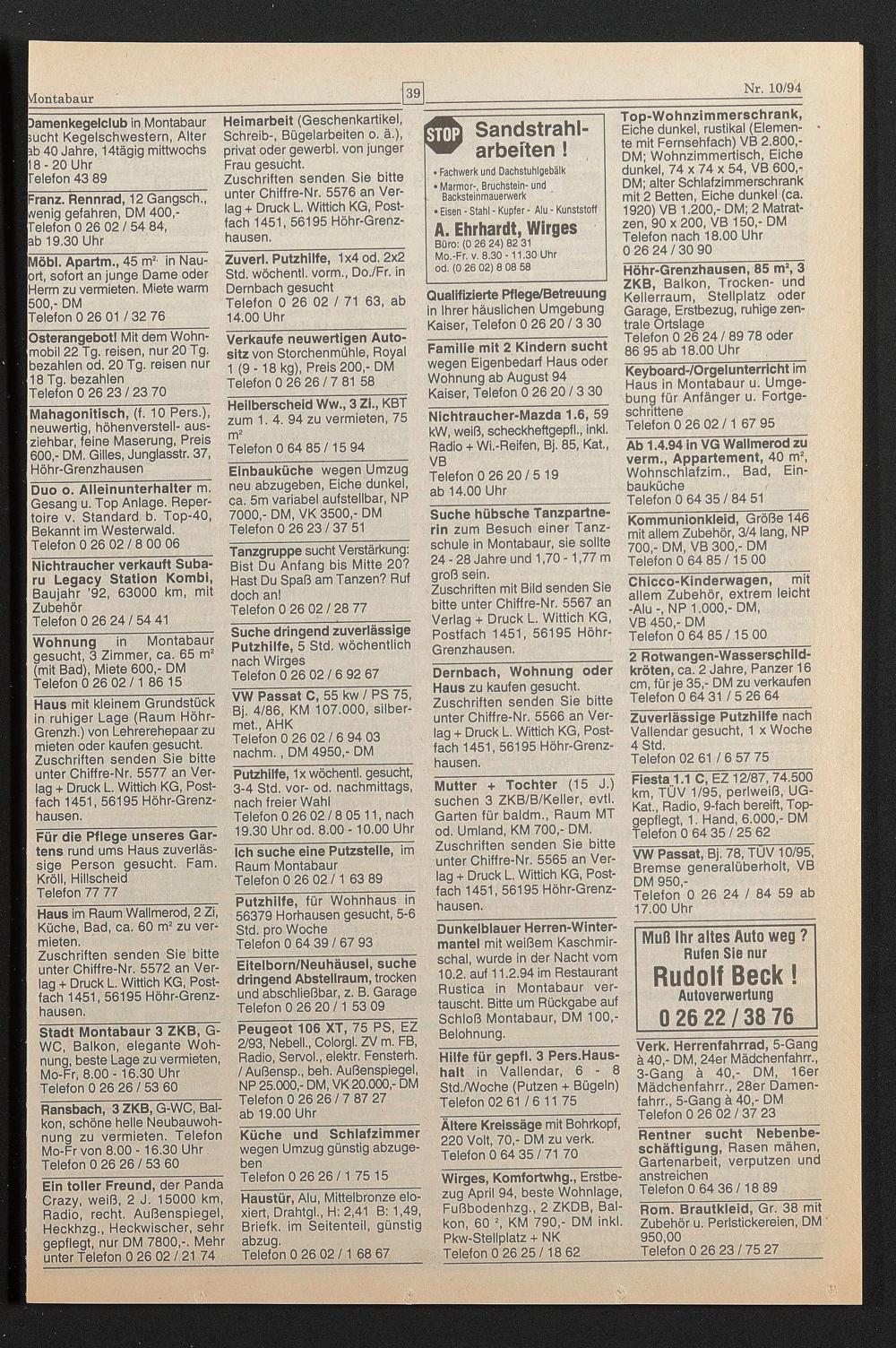 Zuschriften mit Bild senden Sie bitte unter Chiffre-Nr. 5567 an Verlag + Druck L. Wittich KG, Postfach 1451, 56195 Höhr- Grenzhausen.