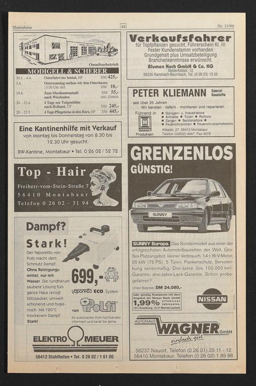 56237 Nauort, Telefon (0 26 01) 20 11 - 12 56410 Montabaur, Telefon (0 26 02) 1 89 88