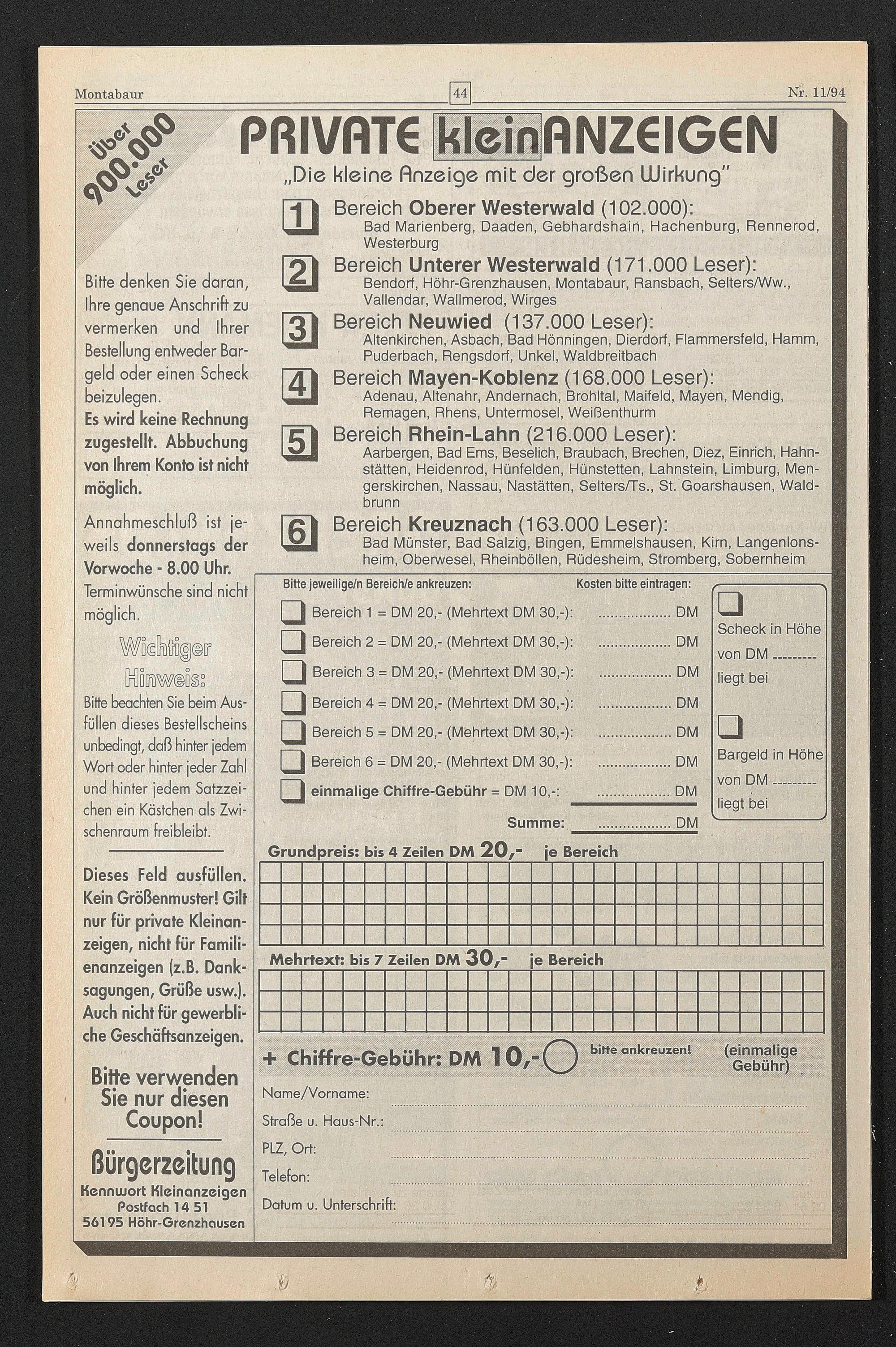 Kennwort Kleinanzeigen Postfach 14 51 56195 Höhr-Grenzhausen