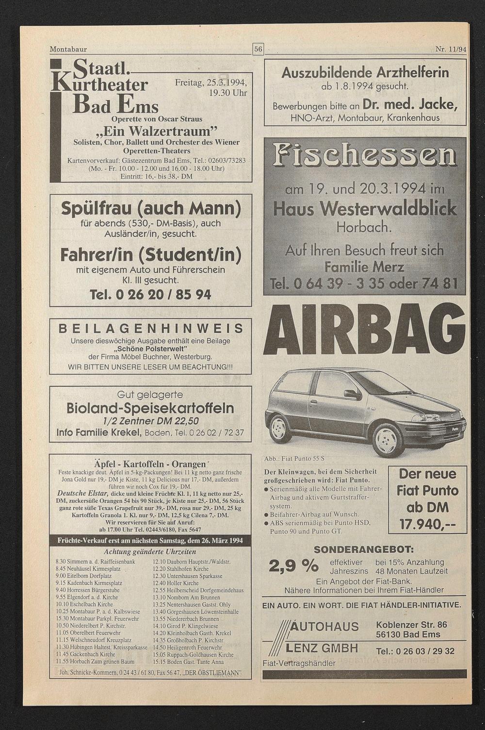Früchte-Verkauf erst am nächsten Samstag, dem 26. März 1994