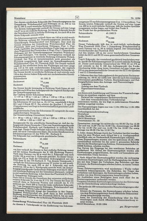 Die Planunterlagen liegen aus vom 11.04.1994 bis 11.05.1994 einschließlich bei der