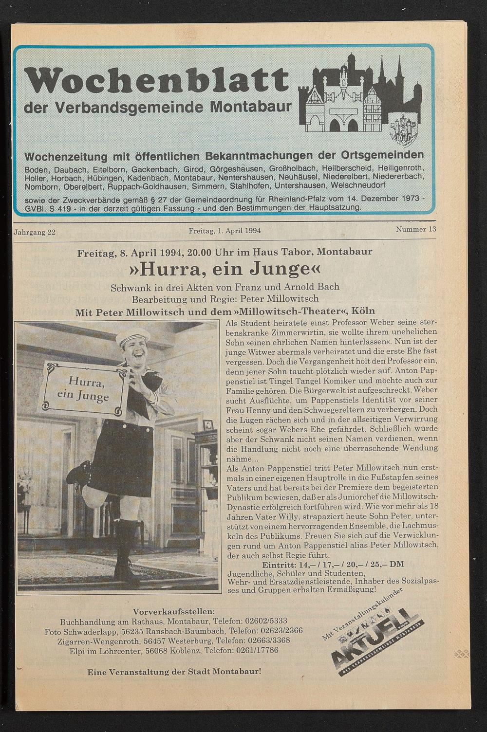 Freitag, 8. April 1994, 20.00 Uhr im Haus Tabor, Montabaur