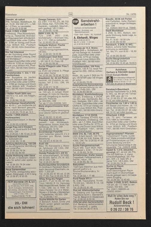 Holler, 3 ZKB, G-WC, Balkon 105 qm, ab 1.5.1994 zu vermieten, KM 900,- DM Tel. (0261)398228 od.