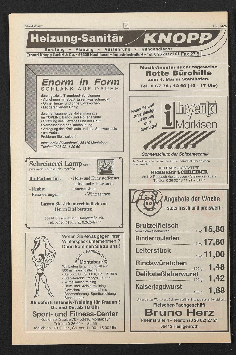 Infos: Anita Piekenbrock, 56410 Montabaur Telefon (0 26 02) 129 50
