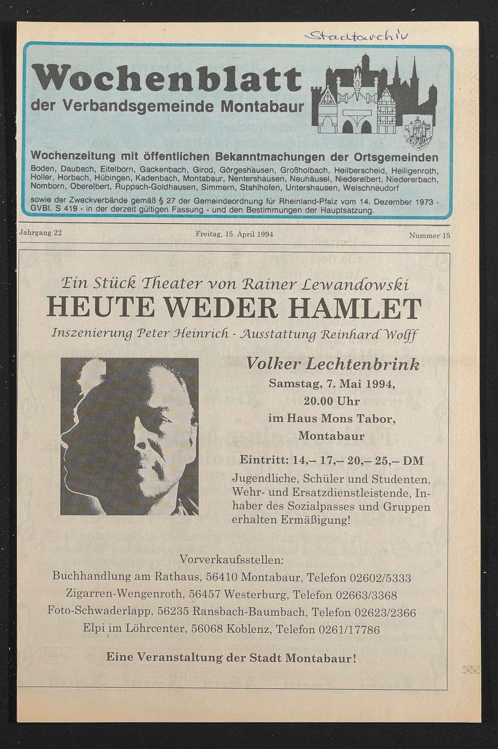 Wochenzeitung mit öffentlichen Bekanntmachungen der Ortsgemeinden