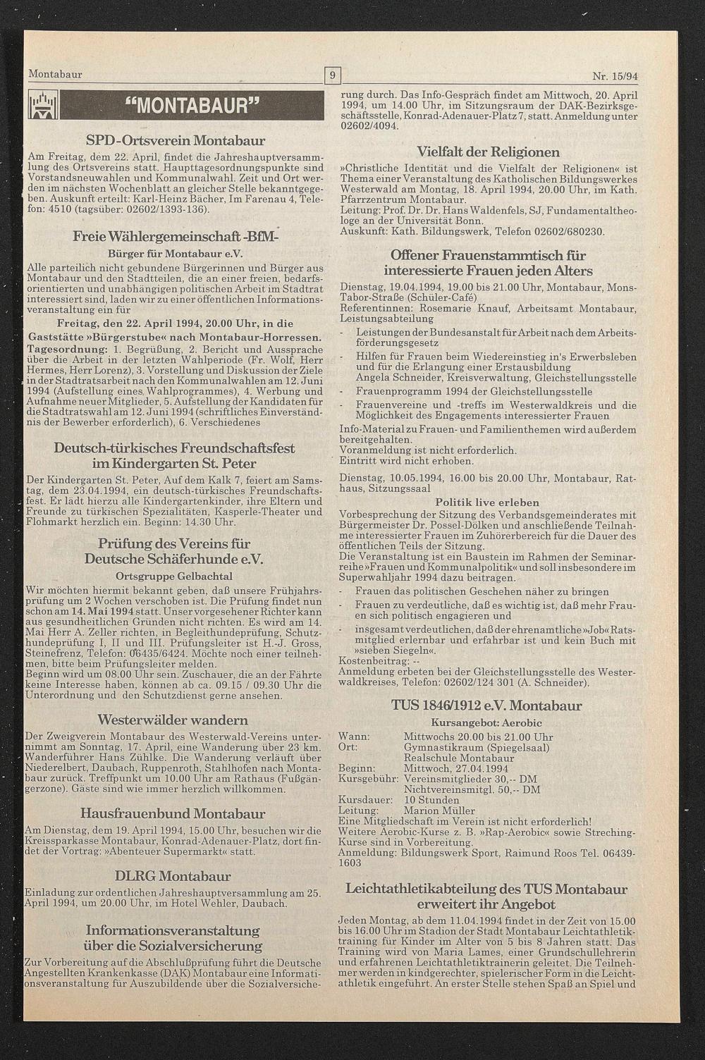 Dienstag, 10.05.1994, 16.00 bis 20.00 Uhr, Montabaur, Rathaus, Sitzungssaal