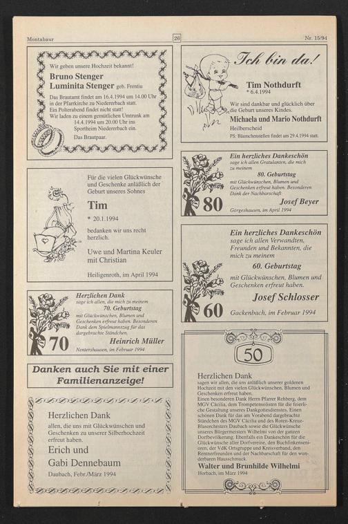 Das Brautamt findet am 16.4.1994 um 14.00 Uhr in der Pfarrkirche zu Niedererbach statt.