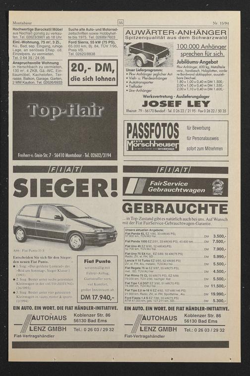• 2. Sieg: Bester unter sechs getesteten Kleinwagen in der »AUTO-ZEITUNG« (26/1993). .