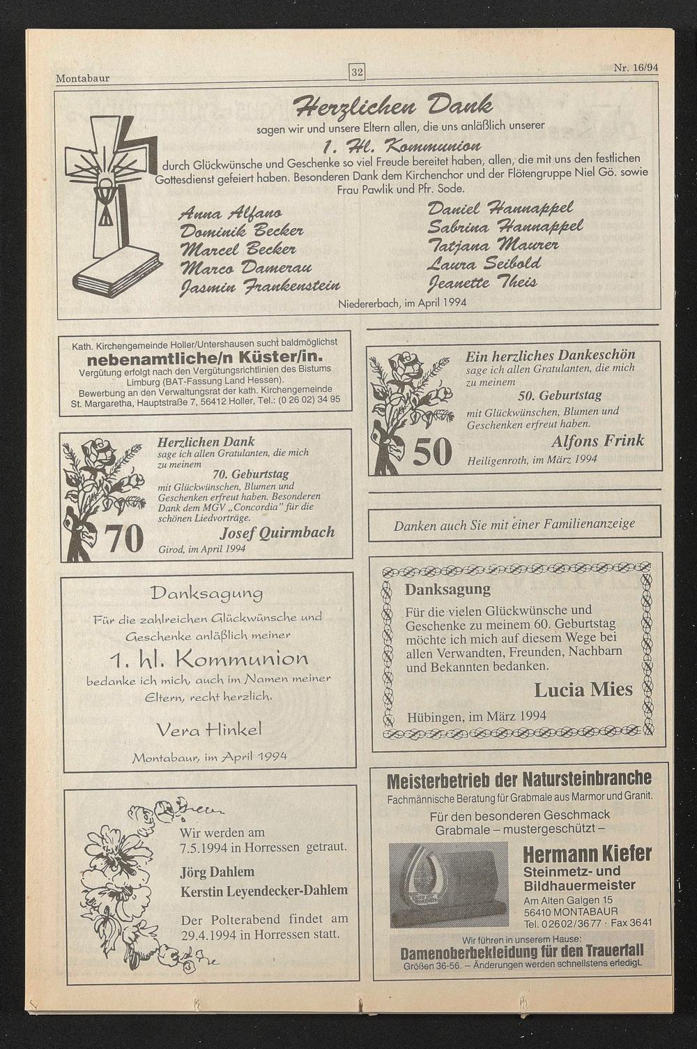 7.5.1994 in Horressen getraut.