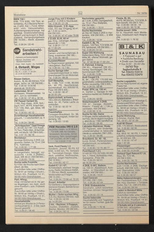 Autom., 123 Tkm, TUV 9/94,60 PS, fahrbereit, VB DM 800,-. Tel.: 0 26 24/51 51_
