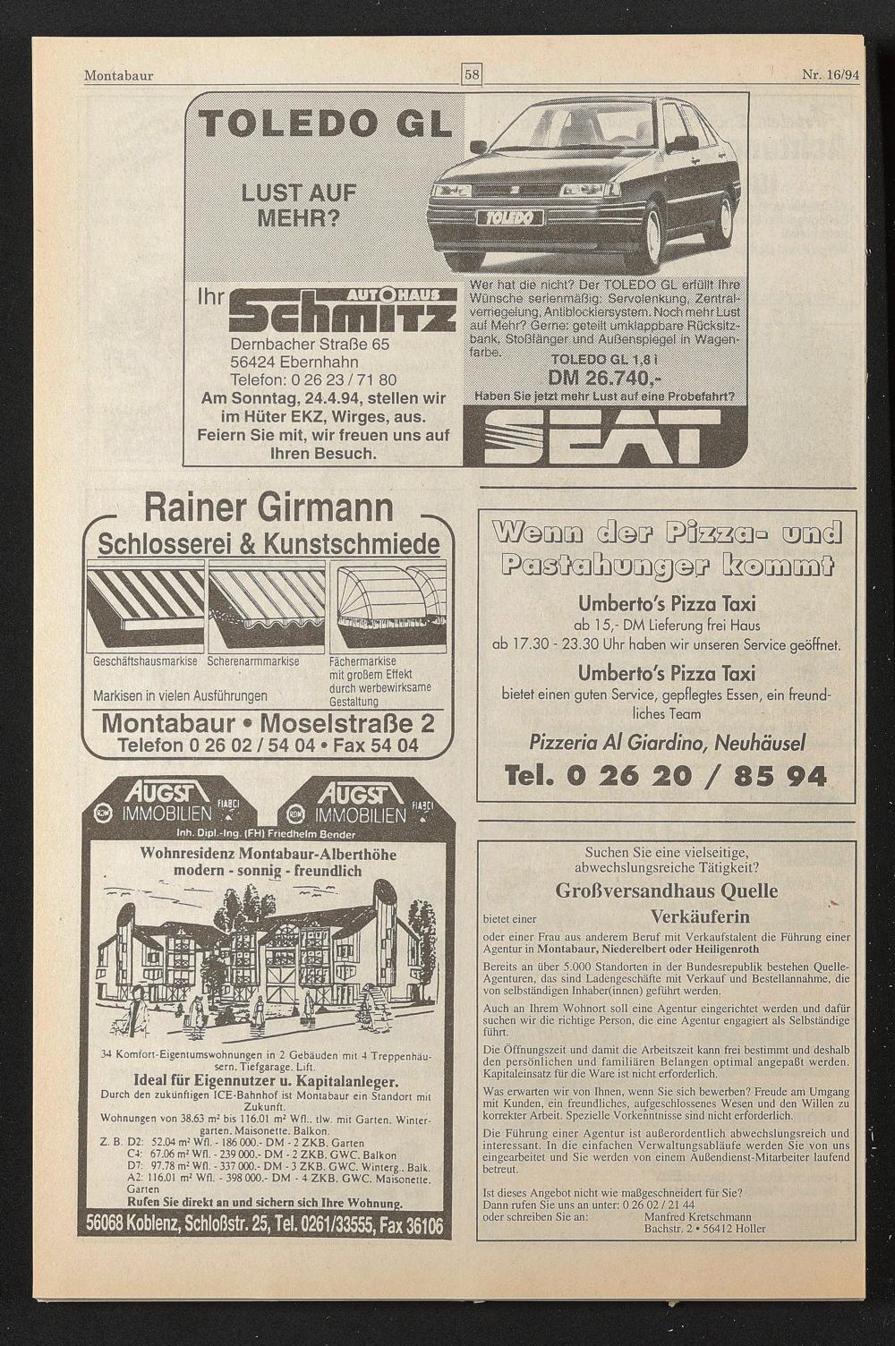 Am Sonntag, 24.4.94, stellen wir im Hüter EKZ, Wirges, aus. Feiern Sie mit, wir freuen uns auf Ihren Besuch.