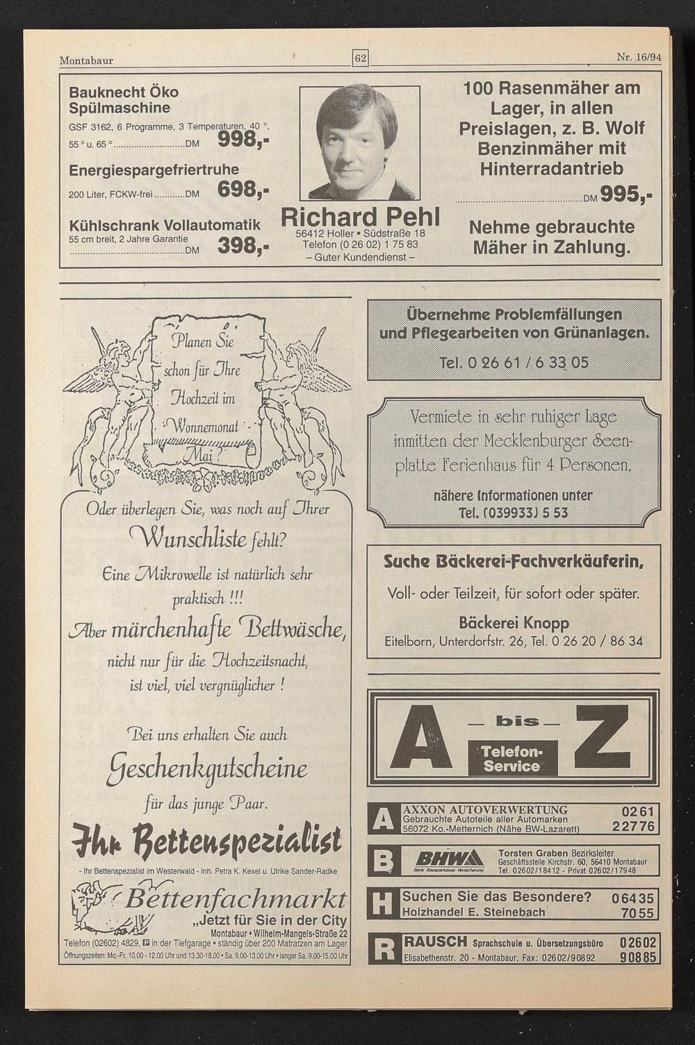 6412 Holler • Südstraße 1 Telefon (0 26 02) 1 75 83 - Guter Kundendienst -