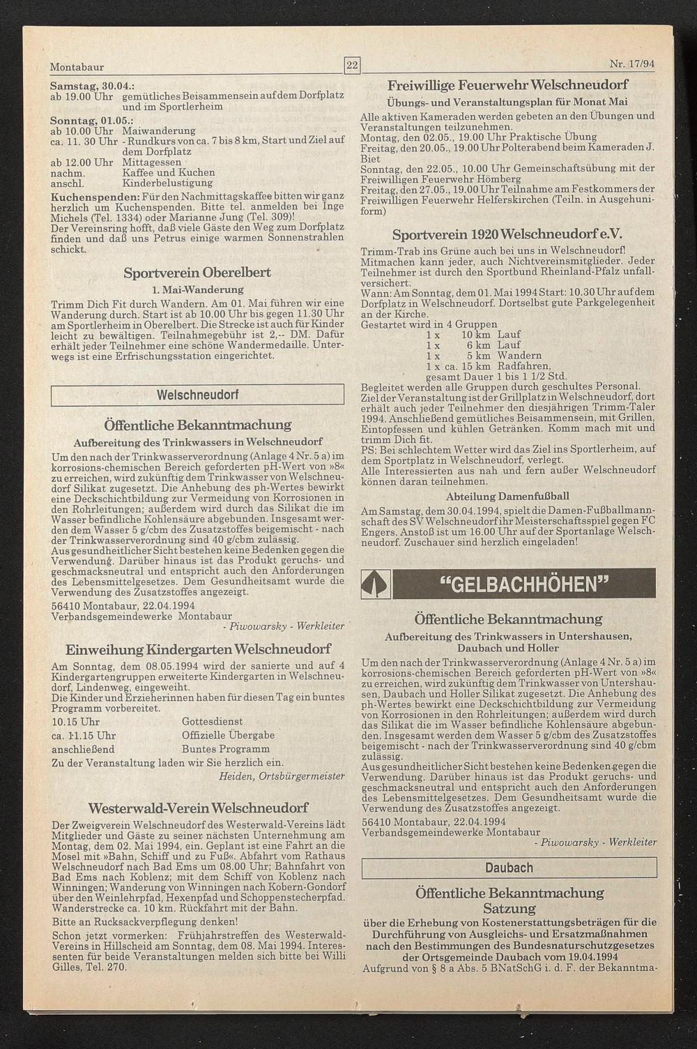 56410 Montabaur, 22.04.1994 Verbandsgemeindewerke Montabaur