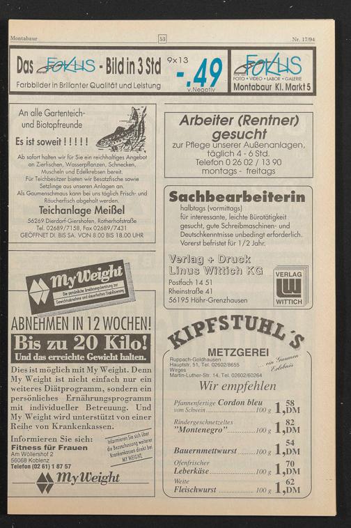 -56269 Dierdorf-Giershofen, Rotherhofstraße Tel. 02689/7158, Fax 02689/7431 GEÖFFNET Dl. BIS SA. VON 8.00 BIS 18.00 UHR