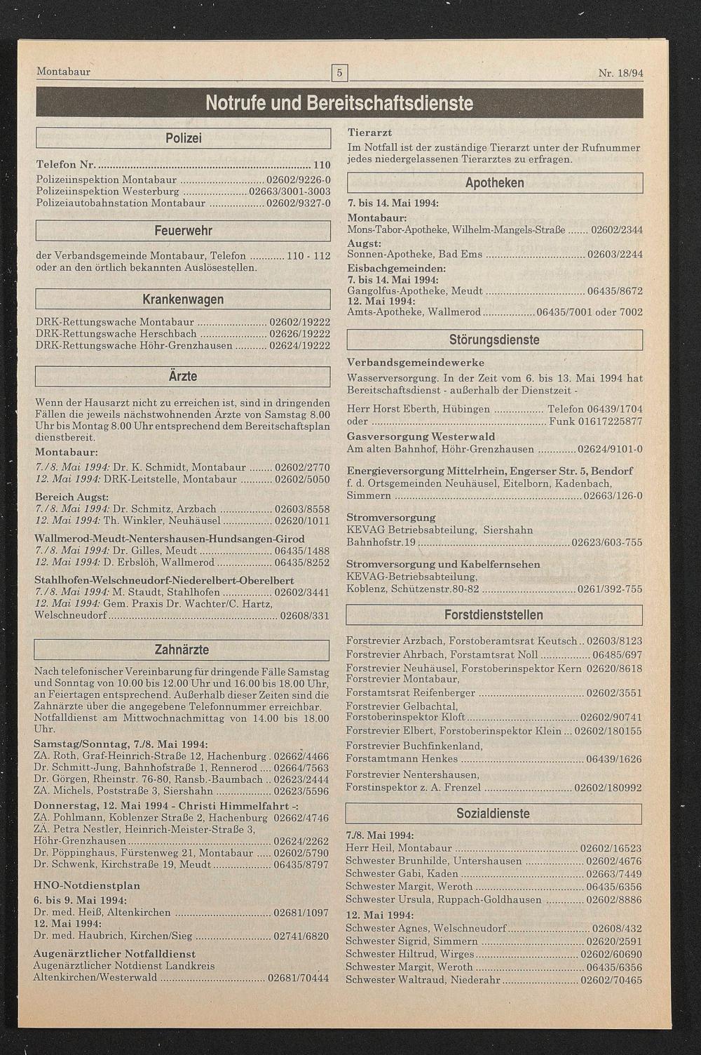7./8. Mai 1994: Dr. Schmitz, Arzbach.02603/8558