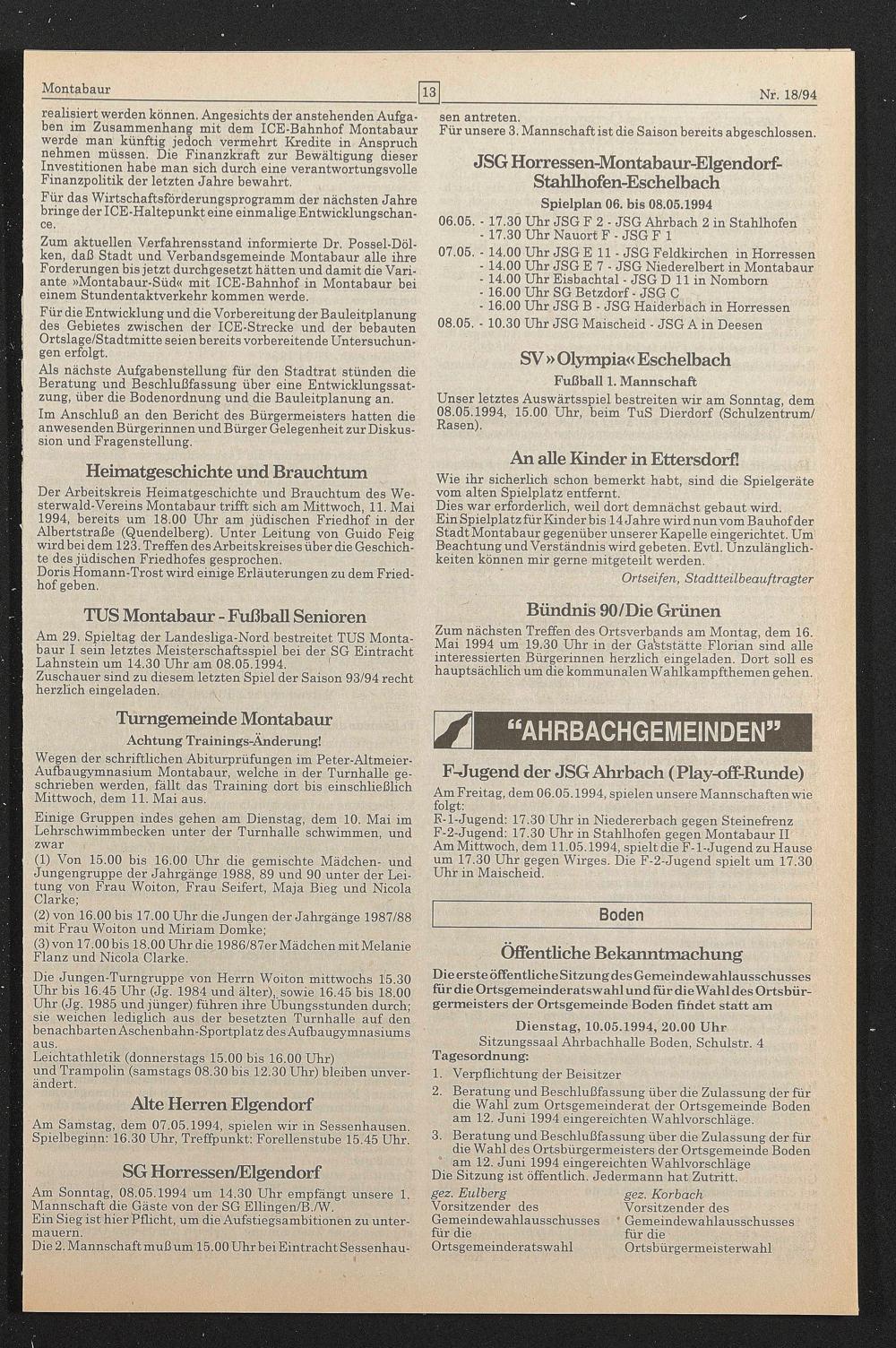 Dienstag, 10.05.1994, 20.00 Uhr Sitzungssaal Ahrbachhalle Boden, Schulstr. 4 Tagesordnung: