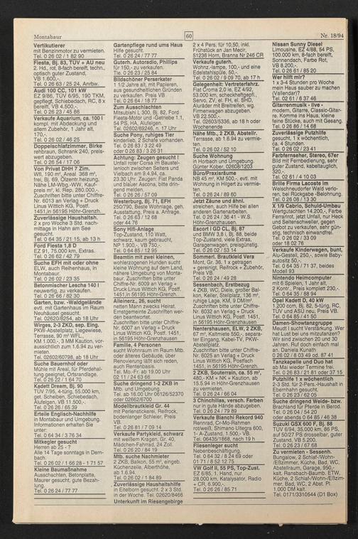 Zuschriften bitte unter Chiffre- Nr. 6025 an Verlag + Druck Linus Wittich KG, Postfach 1451, in 56195 Höhr-Grenzh.