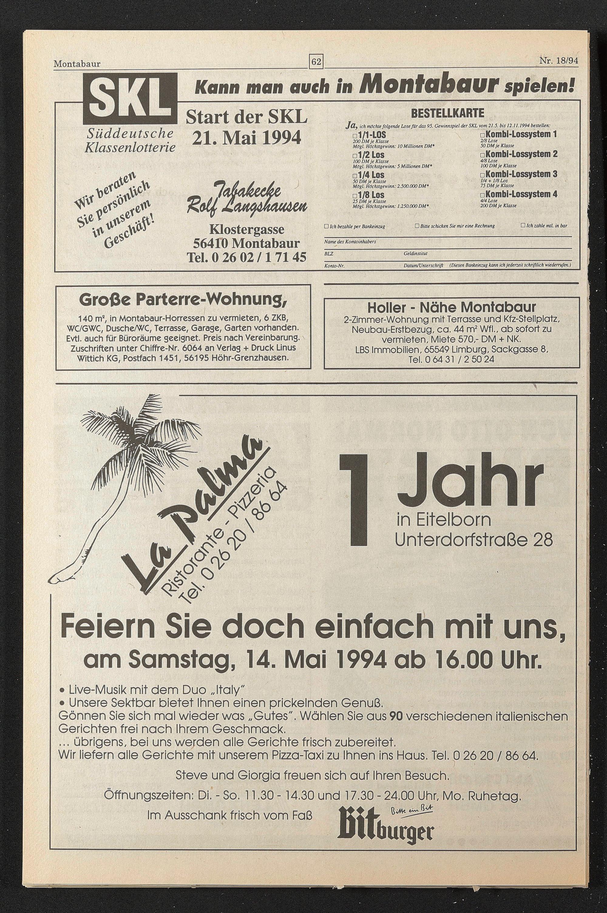 am Samstag, 14. Mai 1994 ab 16.00 Uhr.