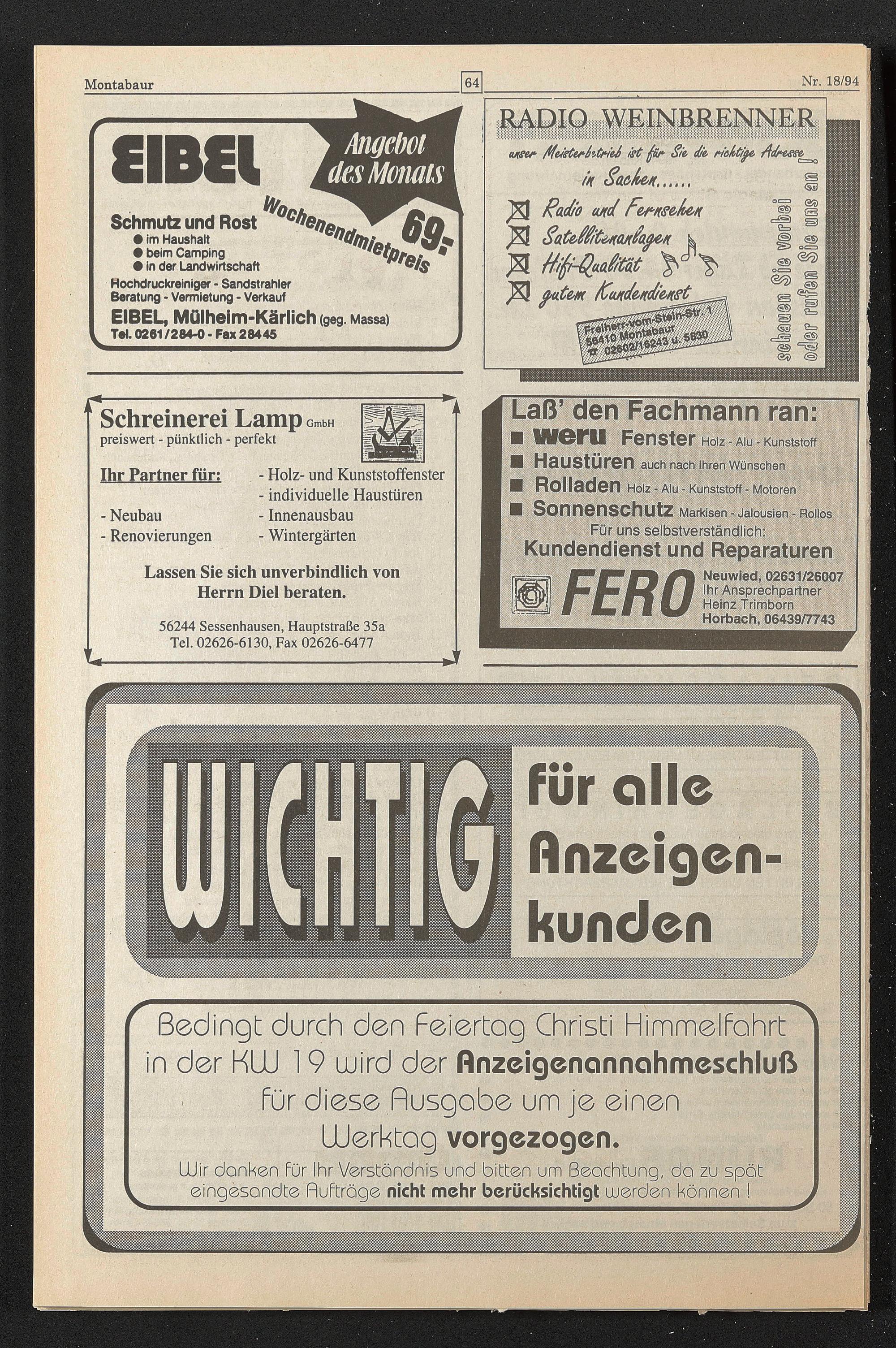 UUir danken für Ihr Verständnis und bitten um Beachtung, da zu spät eingesandte Rufträge nicht mehr berücksichtigt uuerden können !